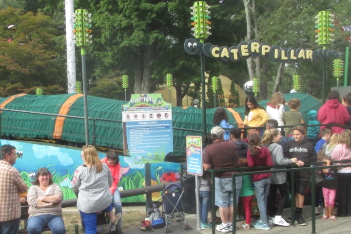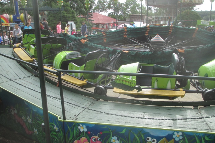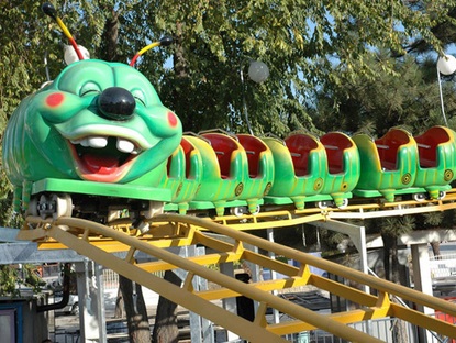 There is a more recent roller coaster ride whose coaster train is given the appearance of a caterpillar (complete with head and tail). It is sized for children, and is categorized as a "kiddie ride." (Photo credit: www.rideschina.com Zhengzhou Limeiqi Amusement Equipment Co. Ltd.)