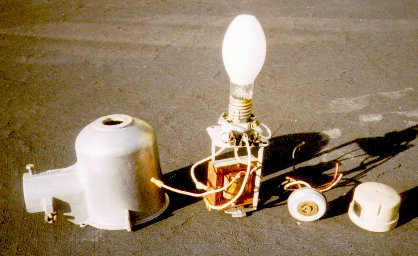 This ballast unit is compatible with existing reflectors and refractors. It adds an additional six pounds of weight to the fixture. As a contrast between today's and yesteryear's magnetic coil technology, an older ballast (for a 250 watt lamp) in this writer's collection, probably of 1950's vintage, weighs 32 pounds..