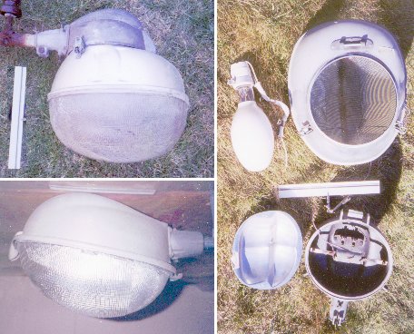 Usually when I saw the incandescent style, it had a more upright cylindrical head, possibly a less expensive head from another vendor, and an adapter ring to fit the larger diameter reflector opening. Very rarely did I see the incandescent style with the same head (shown here) as the mercury style.